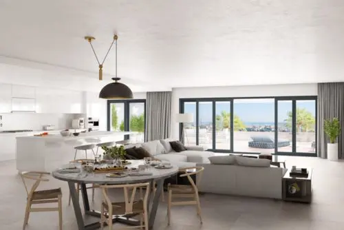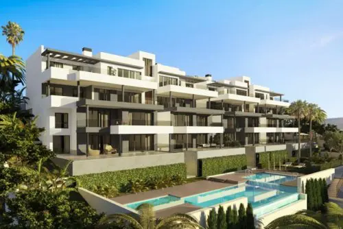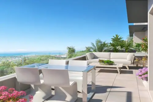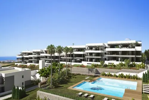 Helt nyt projekt bestående af skandinavisk inspirerede luksus-lejligheder med store terrasser og åben havudsigt lanceret for salg, nær Estepona bymidte.