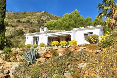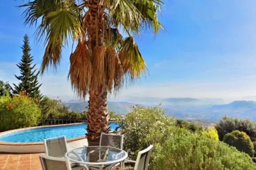 Autentisk og indflytningsklar andalusisk finca med egen pool, panoramisk udsigt og enorm grund, beliggende i det smukkeste bjerglandskab, kun 35 min. kørsel fra Malaga lufthavn.