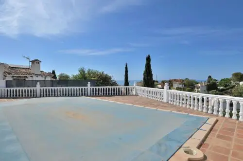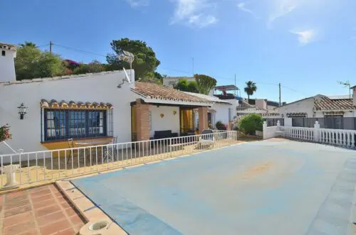 Skøn villa med kæmpe potentiale sælges til uhørt lav pris! Privat swimmingpool, hyggelig have og udsigt til Middelhavet, plus placering i Benalmadena's eksklusive La Capellania.