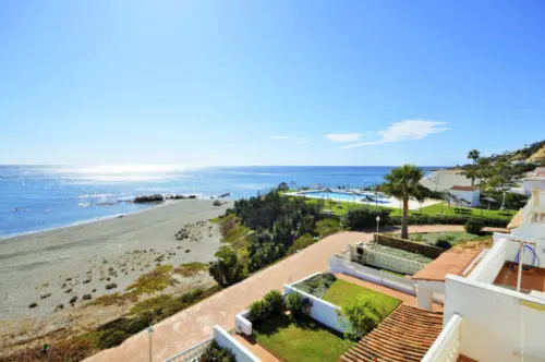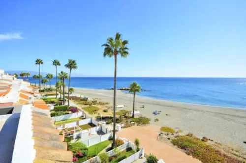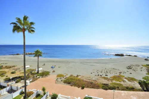 Rækkehus beliggende i 1. linje til Middelhavet i Manilva sælges billigt, perfekt egnet til en let omgang renovation. Kæmpe udlejningspotentiale!