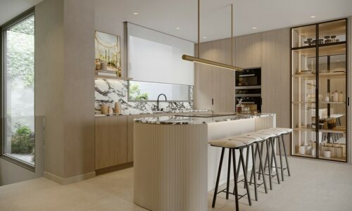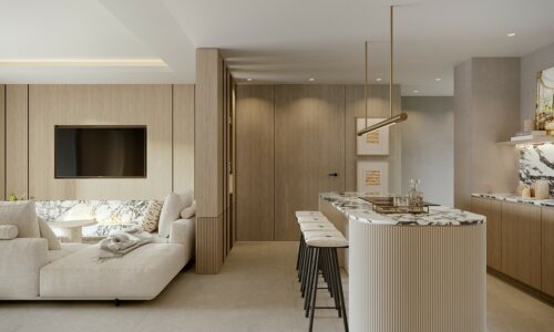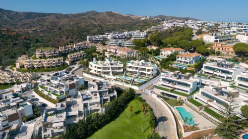Boutique-byggeri bestående af otte luksuriøse ejendomme med privat pool, åben panoramavue til Middelhavet og placering i kort køreafstand fra hyggelige Cabopino havn i Marbella.
