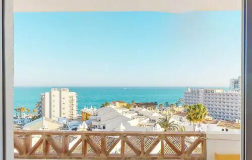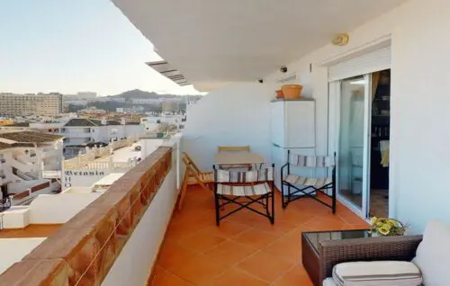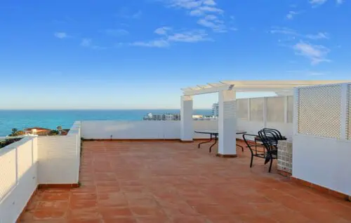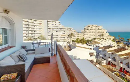 Renoveringsegnet ferielejlighed med stor tagterrasse til salg i Benalmadena, placeret 200 meter fra byens bedste strand, og få minutters gang fra byliv, restauranter og indkøb.