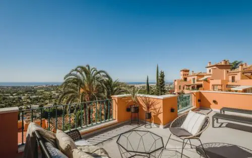 Kompromisløs førsteklasses luksuspenthouse til salg i Marbella, med egen swimmingpool, malerisk panoramaudsigt og hele 205 etagemeter, placeret få minutter fra Puerto Banus.