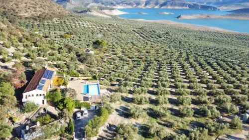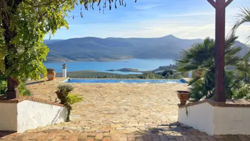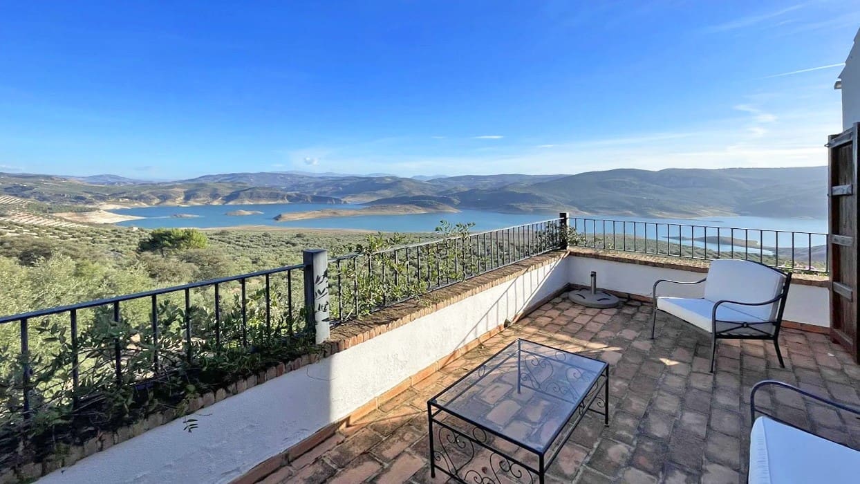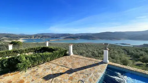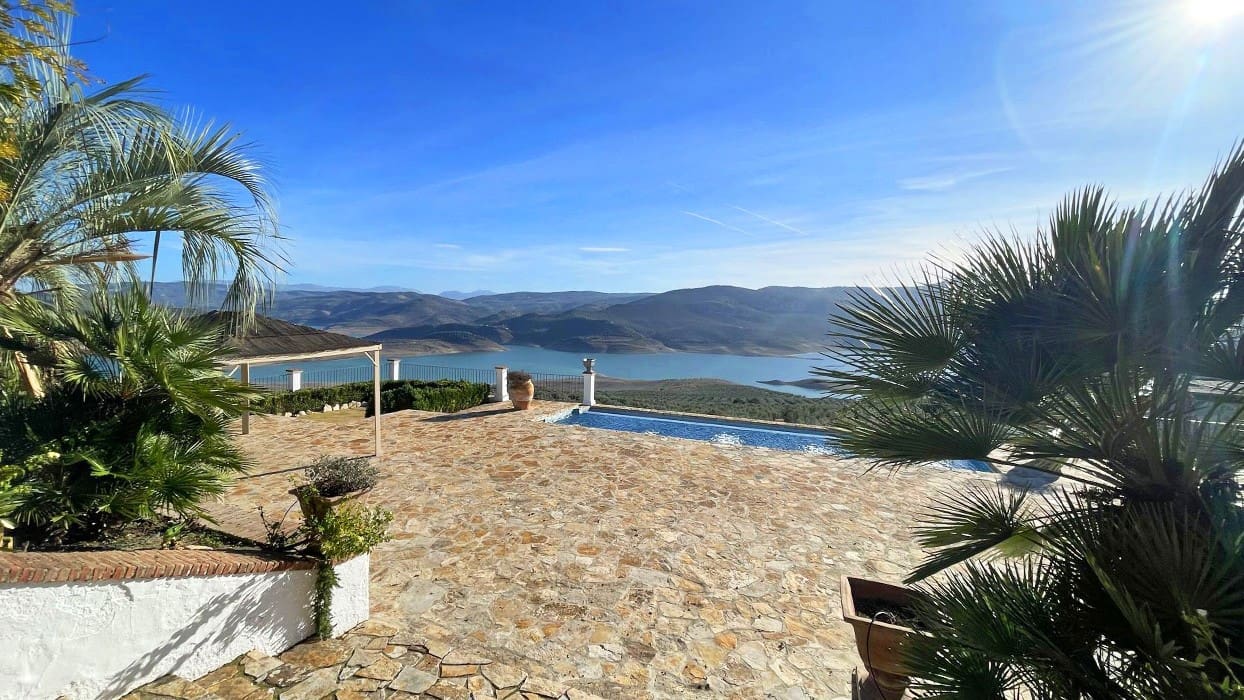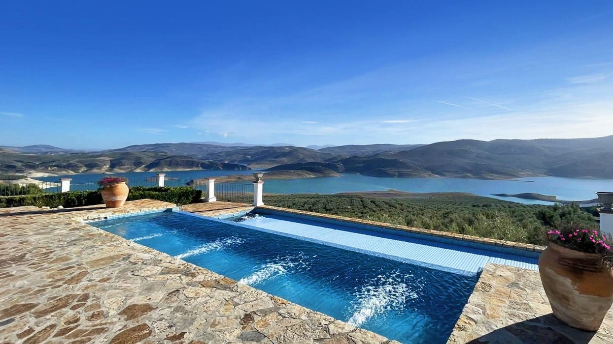Fortryllende landhus til salg nær Malaga i Spanien, med hele seks store soveværelser, infinity-pool og malerisk panoramavue udover Iznajar-søen samt det andaluiske bjerglandskab.