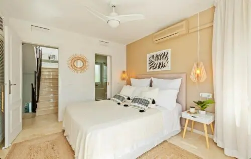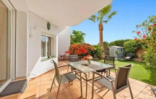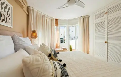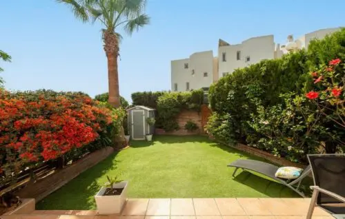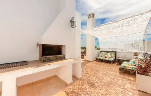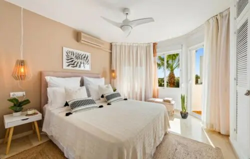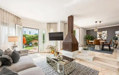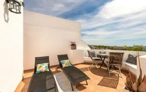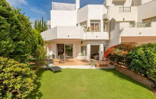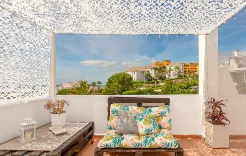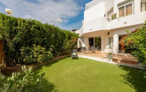 Idyllisk, totalrenoveret hjørnehus med hyggelig have og fantastisk tagterrasse, bare 10 min. gang fra strand og restauranter på New Golden Mile, midt mellem Marbella og Estepona.