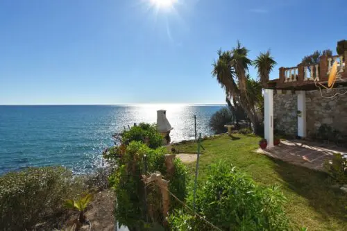 Boligen er helt unikt beliggende på en fantastisk priviligeret grund i absolut 1. linje til Middelhavet.