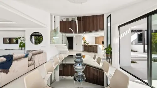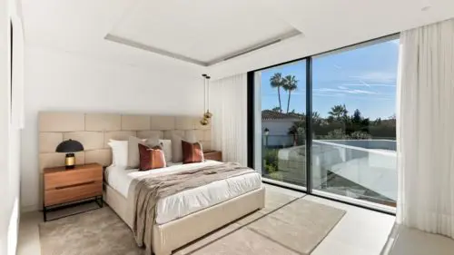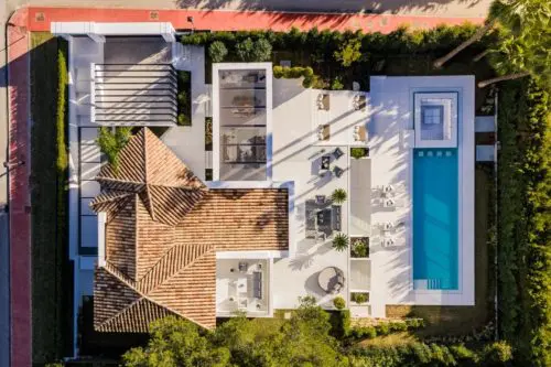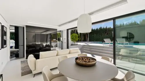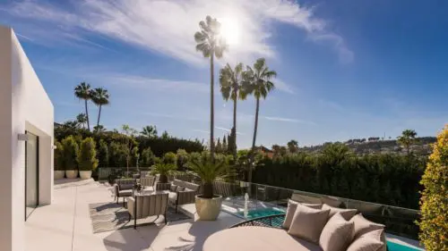 Los Angeles inspireret luksus-villa til salg i Marbella, med 5 soveværelser, egen pool, åben udsigt og i kort gå-afstand fra indkøb, restauranter og eksklusiv golfklub.