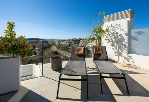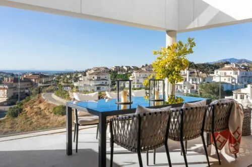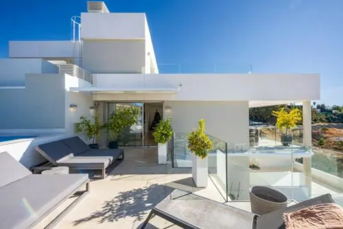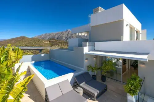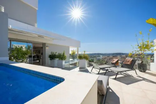 En af Marbella's bedste penthouses med egen swimmingpool og hele 144 m² privat terrasse til salg, beliggende på en rolig adresse i det eftertragtede Nueva Andalucia.