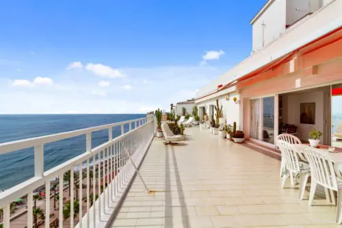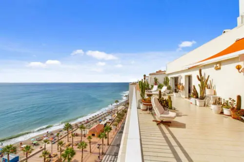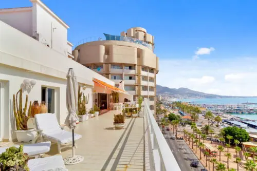 Bliv ejer af Fuengirola's nok allermest unikke og bedst beliggende penthouse lejlighed, med 3 soverum og placering i 1. linje til stranden og promenaden.