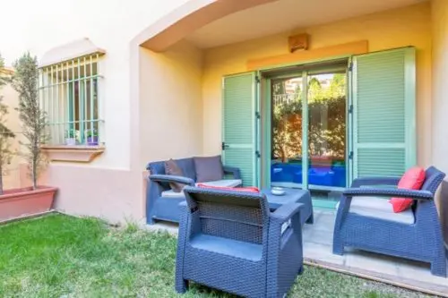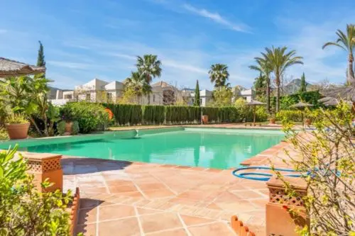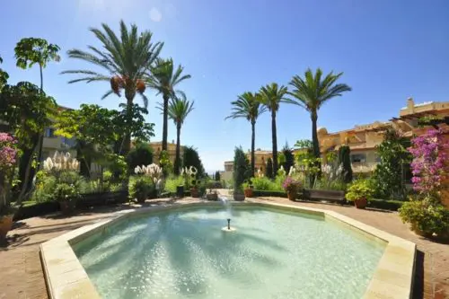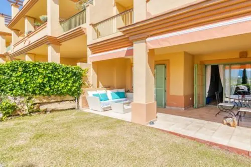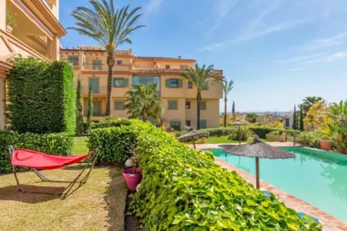 Hyggelig familieegnet havelejlighed med direkte udkig til poolen og havet, beliggende i det super luksuriøse Los Flamingos, få minutters kørsel fra Puerto Banus.