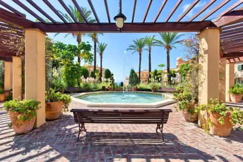 Fra boligens udendørs arealer er der et godt udsyn udover ejendommens poolområde.