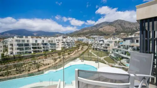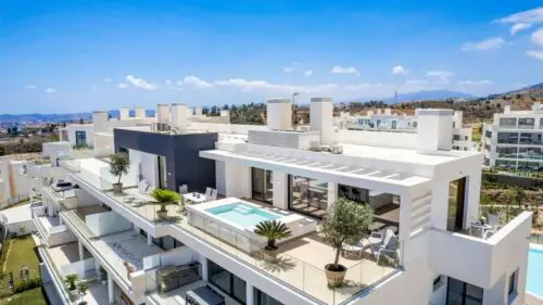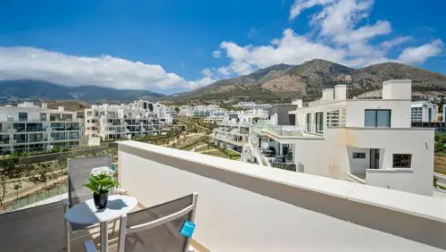 Områdets måske bedste luksuspenthouse med stor terrasse og egen, opvarmet pool, til salg i eksklusive Reserva del Higueron, få minutter fra strand, by og sportsfaciliteter.