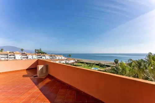Moderne ferielejlighed til salg i 1. linje til Middelhavet på Costa del Sol, i gå-afstand til hyggeligt havnemiljø med et bredt udvalg af gode spisesteder og indkøbsmuligheder.