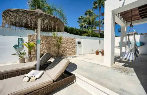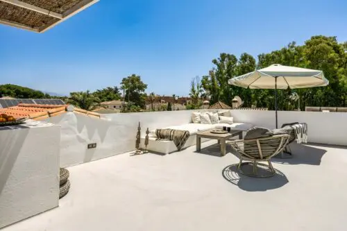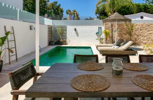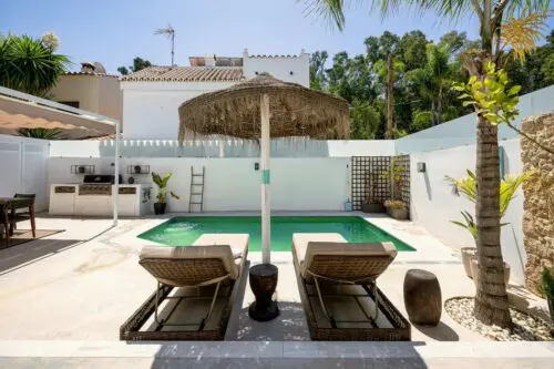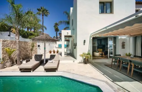 Skønt nyrenoveret hus i Marbella til salg, placeret på en yderst priviligeret adresse, bare 200 m. fra fantastisk badestrand, og 20 min. gang fra glamourøse Puerto Banus.