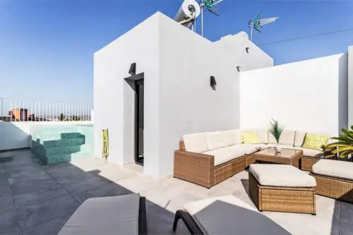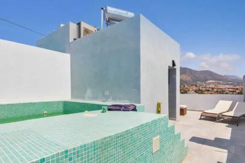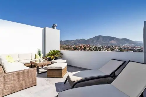 Moderne hus i skandinavisk stil til salg i Fuengirola, med egen pool, flot panoramavue samt kort gåafstand til butikker, togstation, bager, restauranter og sågar stranden.