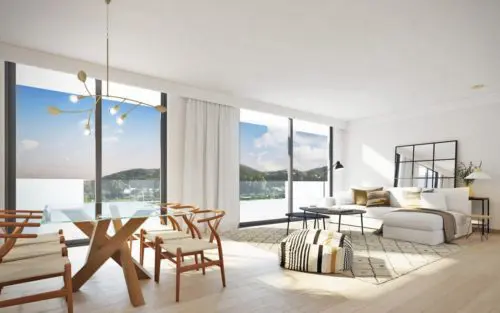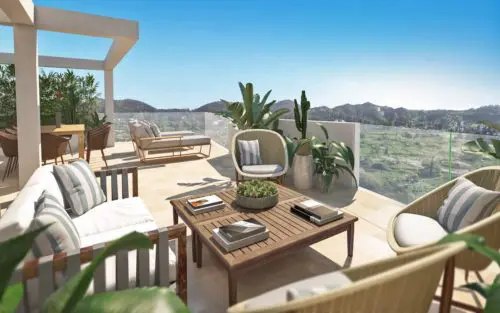 124 helt nye lejligheder med store terrasser og skøn udsigt, beliggende i rolige grønne omgivelser lige udenfor Fuengirola bymidte, kun 1,8 km. fra strandpromenaden nu til salg.
