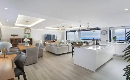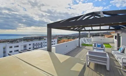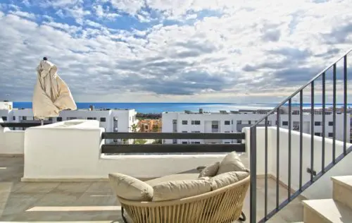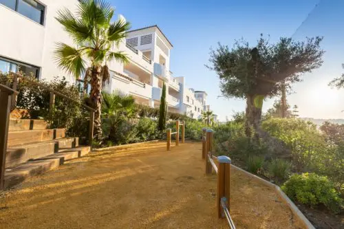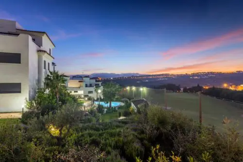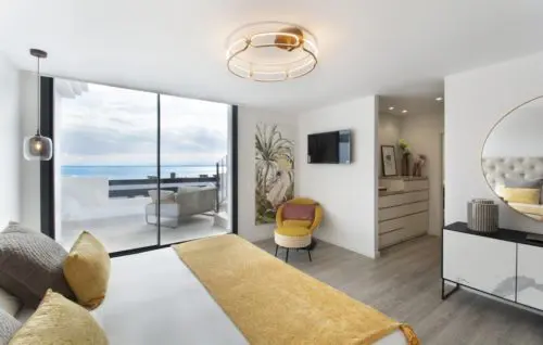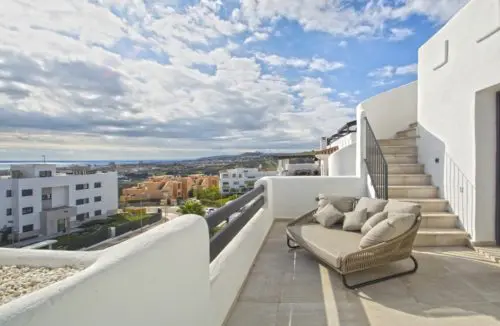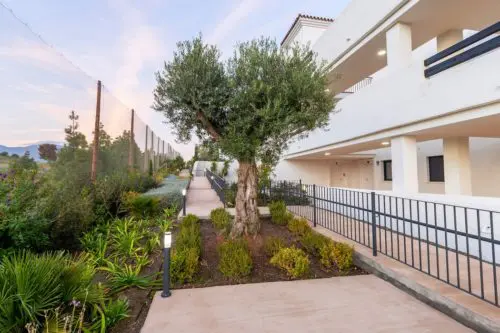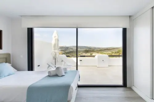 Moderne ferielejligheder beliggende i kort gåafsand til både by, golf og hav, med to soveværelser, store sydvendte terrasser og udsigt til enten bjerge, vand eller grøn natur.