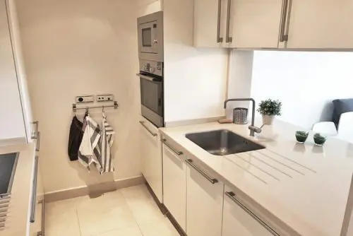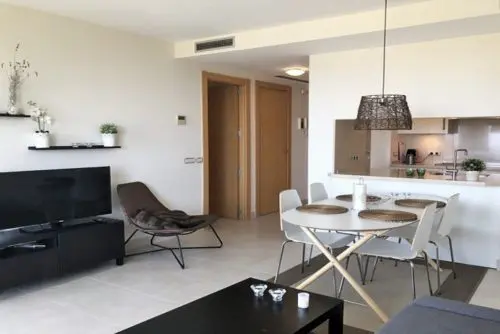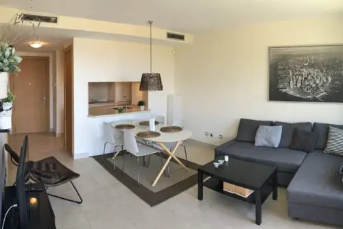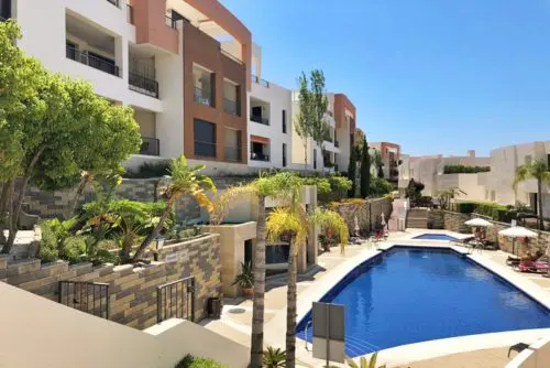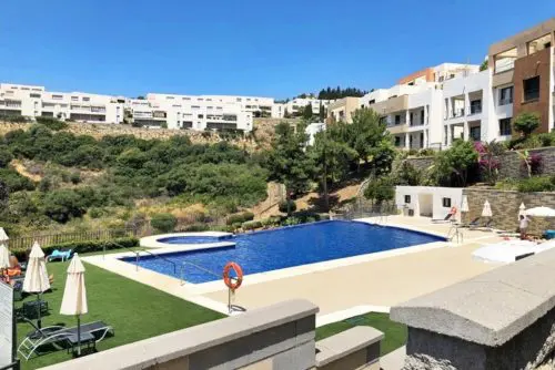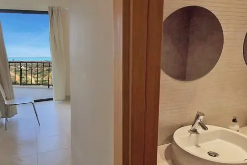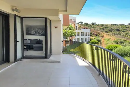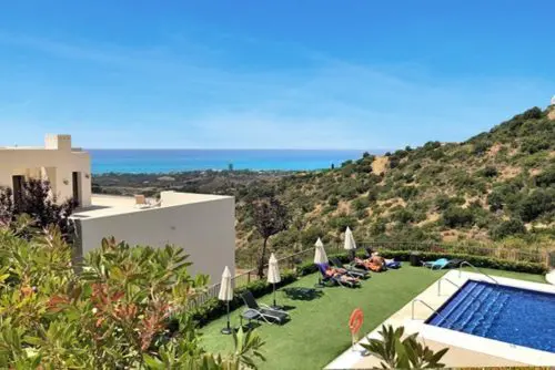 Moderne lejlighed i Marbella, med skøn sydvestvendt terrasse, panorama-view til Middelhavet, og 1. klasses fælles-faciliteter til salg. Årligt leje-afkast på hele 9%!