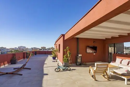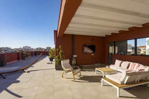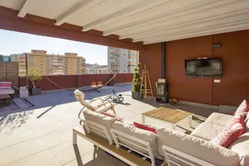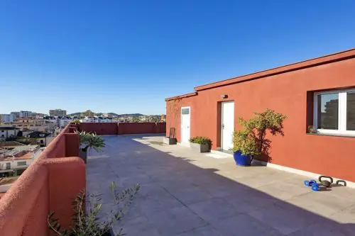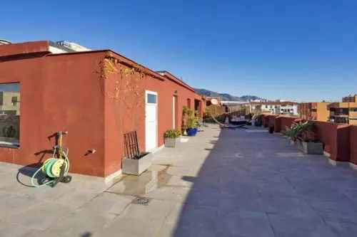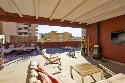 Moderniseret penthouse til salg i Fuengirola centrum, med 4 soveværelser og egen gigantisk sydvestvendt terrasse med by- og vandudsigt til salg.