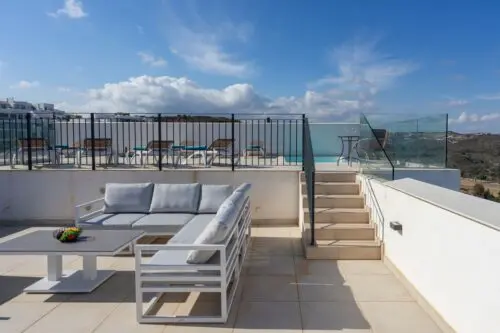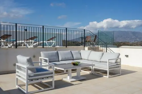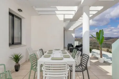 Fantastisk penthouse lejlighed med hele fire soveværelser og egen pool til salg i La Cala de Mijas, 15 minutters gang fra strand, byliv, restauranter og indkøbsmuligheder.