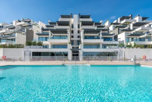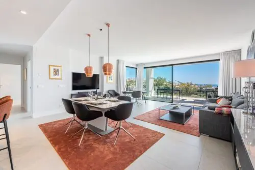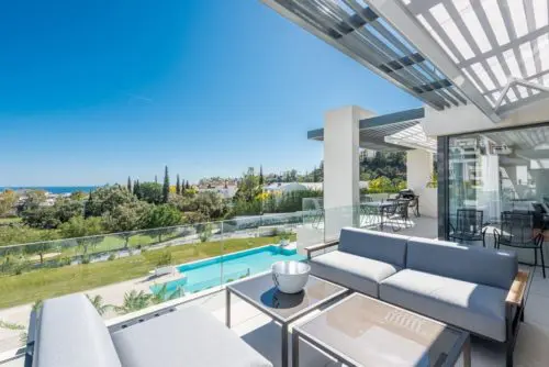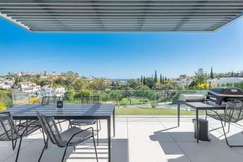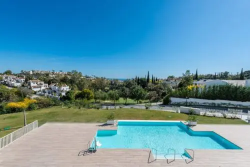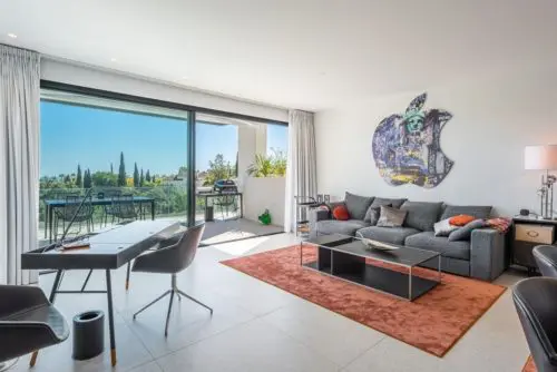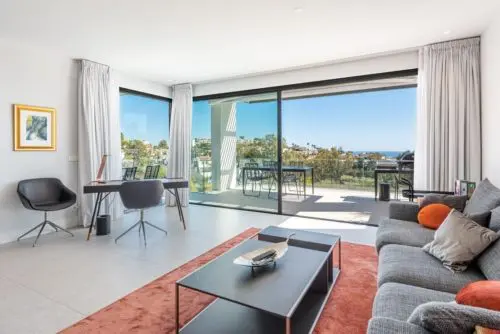 Nybygget luksuslejlighed til salg i La Quinta, midt i frodige grønne naturomgivelser, og alligevel kun få minutters kørsel fra kysten, prominente golfbaner og Marbella by.