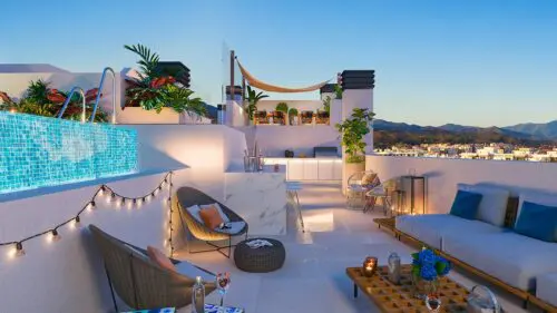 23 helt nye moderne bylejligheder, placeret i anden linje til stranden midt i Estepona centrum, netop frigivet for salg. Fantastisk beliggenhed midt mellem vand, by og havn.