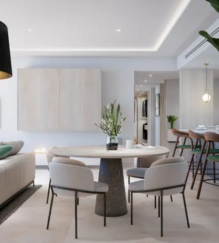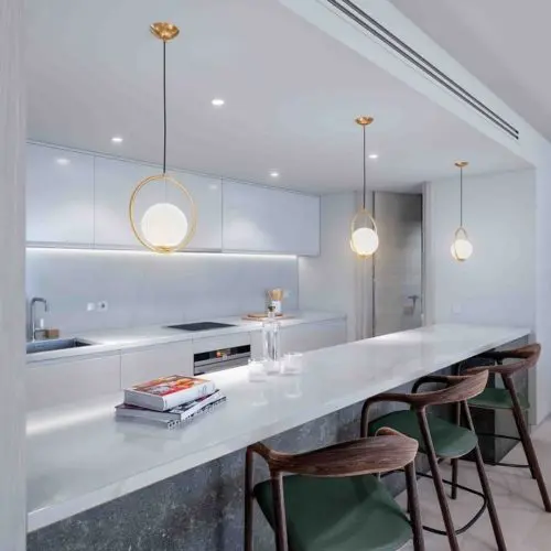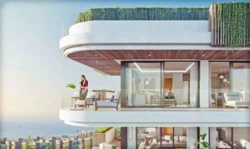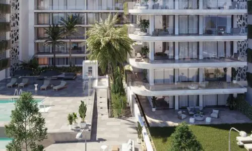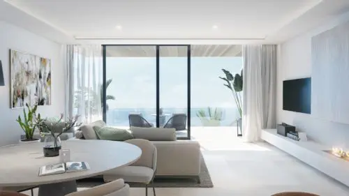 Nyt luksus-byggeri med panoramaudsigt samt eget spa og fitness, beliggende på unik og stærkt eftertragtet placering blot 100 meter fra stranden og paseoen i Fuengirola centrum.