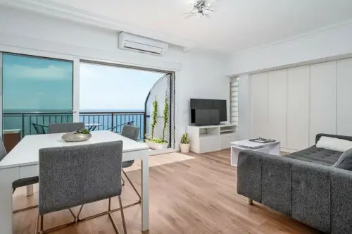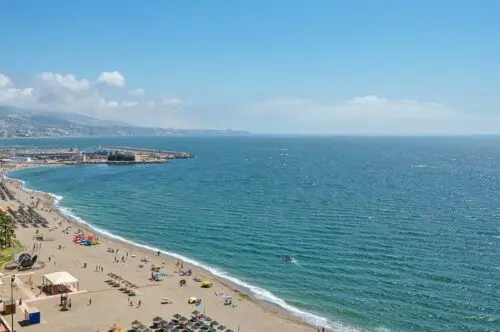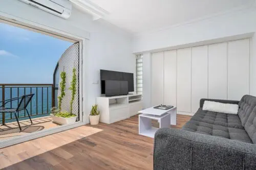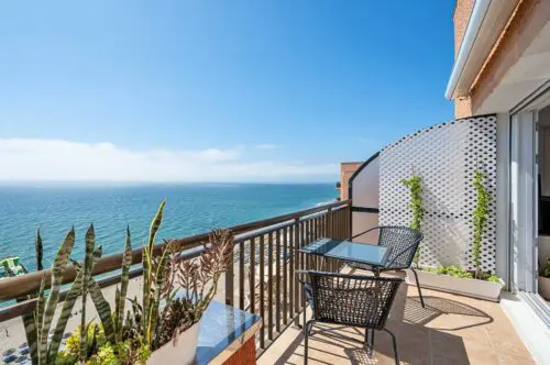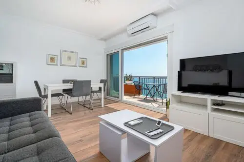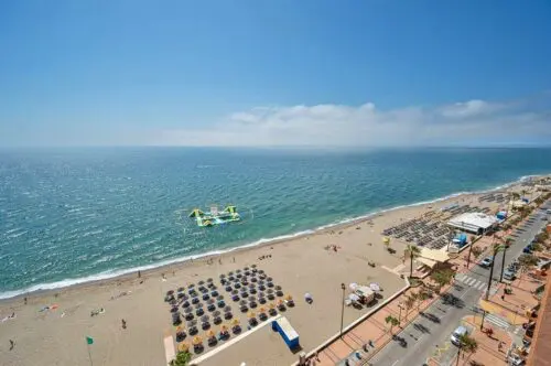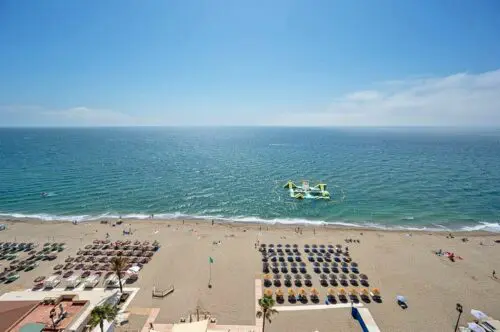 Nyrenoveret penthouselejlighed til salg midt på paseoen i Fuengirola centrum, med fabelagtigt 180 graders panoramavue udover promenaden, stranden og Middelhavet.