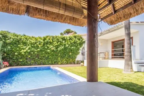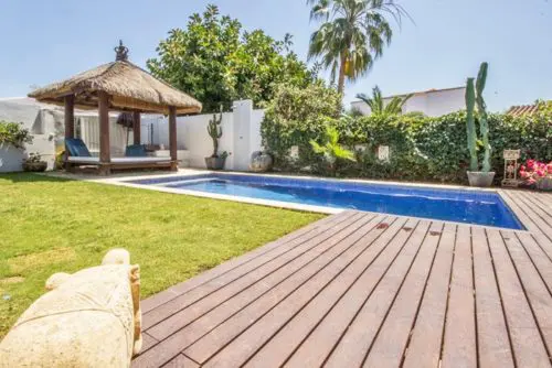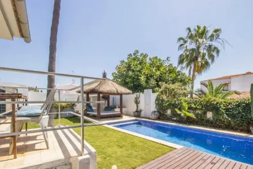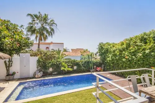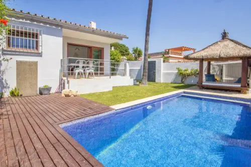 Helt unik chance! Totalrenoveret bungalow med egen pool, beliggende ved fantastisk badestrand i eksklusive Marbella, udbydes nu til samme pris som en lejlighed.
