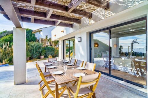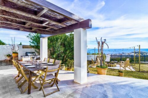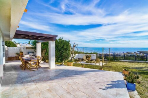 Boligen er helt unikt beliggende på en fantastisk priviligeret grund i absolut 1. linje til Middelhavet.