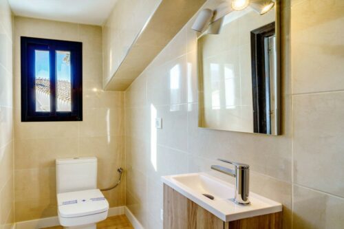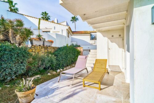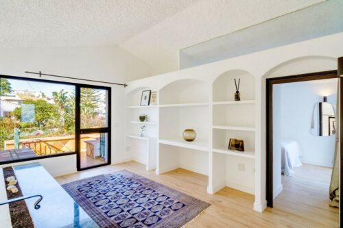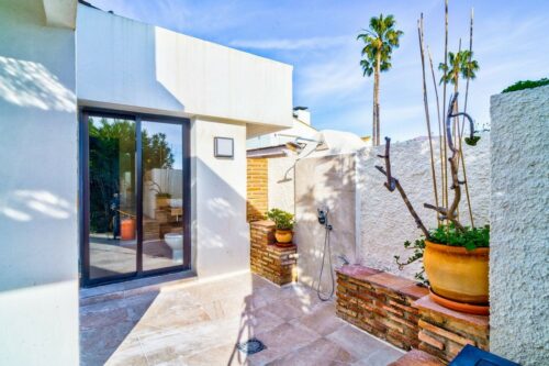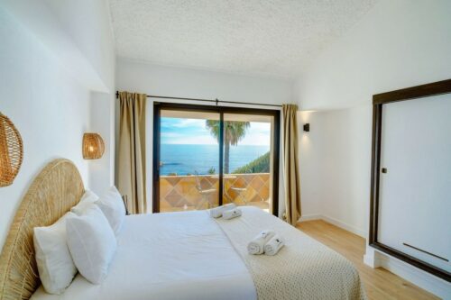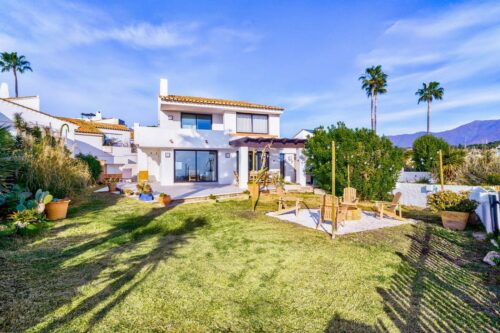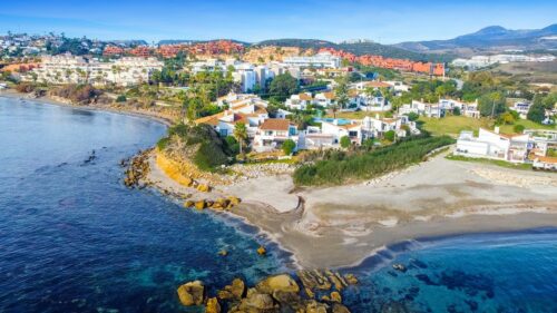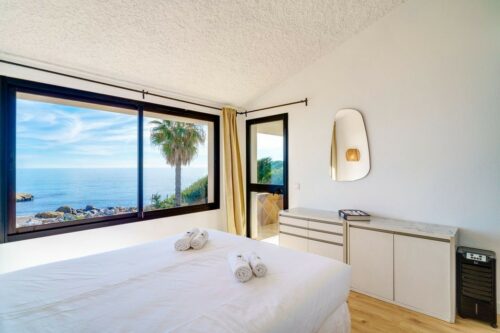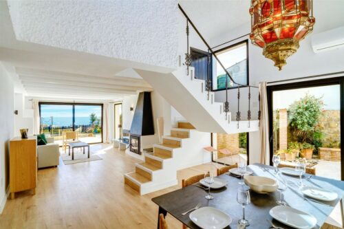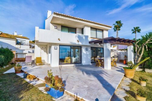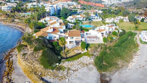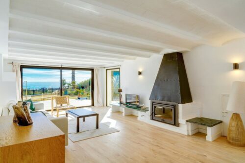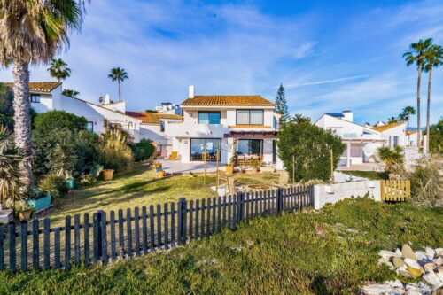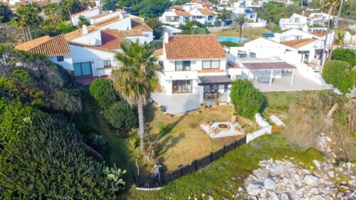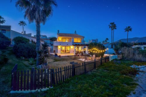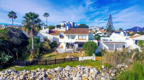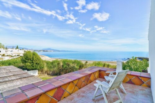 Nyrenoveret villa til salg på stranden i Estepona, med en fuldstændig unik placering i absolut første parket til Middelhavet, og uspoleret udsigt henover bugten til Estepona by.