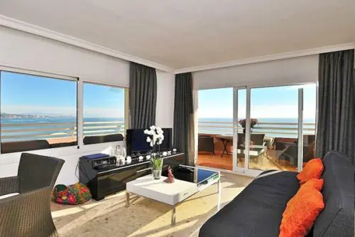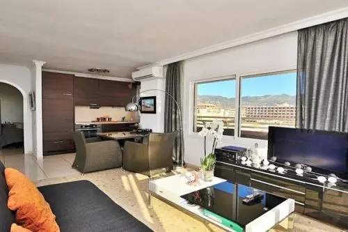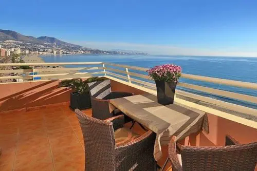 Flot indflytningsklar feriebolig på paseoen til salg i Fuengirola, med fantastisk åben udsigt henover promenaden og Middelhavet. Super velegnet til udlejning.