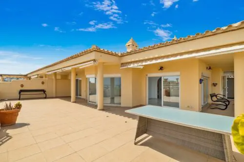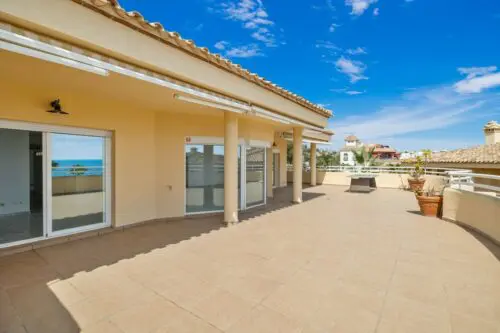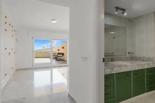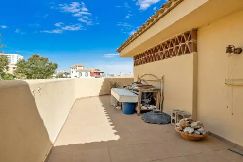 Stor penthouselejlighed med tre soveværelser sælges, beliggende på stærkt efterspurgt adresse i anden række til Middelhavet, få minutters gang fra Benalmadena centrum.