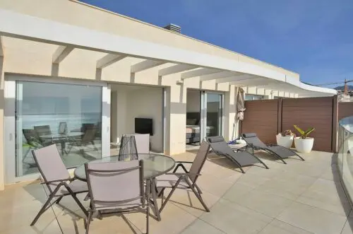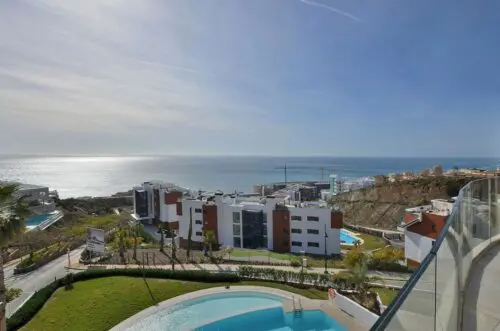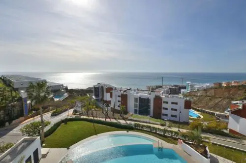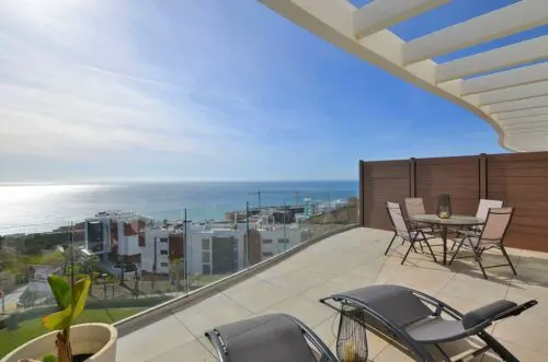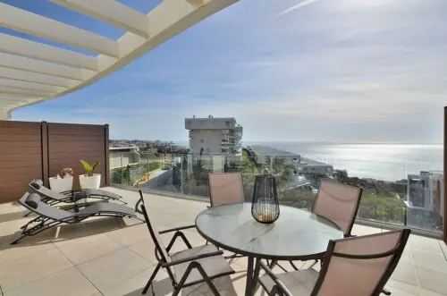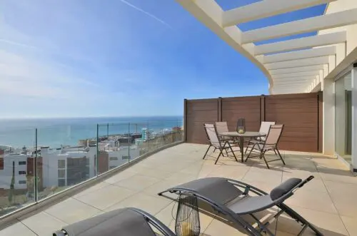 Penthouse med panoramavue til salg i Fuengirola, placeret bare 500 meter fra promenade, strand, indkøb, spisesteder og den lokale togstation med forbindelse til lufthavnen.
