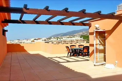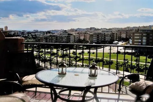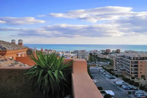 Nyere penthouse med stor privat tag-terrasse og smuk panoramisk Middelhavsudsigt nu til salg i Torremolinos, indefor kort gåafstand til vand, by og havn.