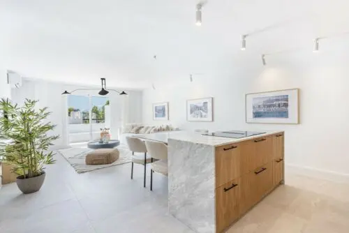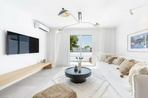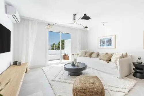 Skandinavisk-inspireret penthouselejlighed med fantastisk tagterrasse, og eftertraget beliggenhed i hjertet af Marbella's über-populære Nueva Andalucia, netop kommet til salg.
