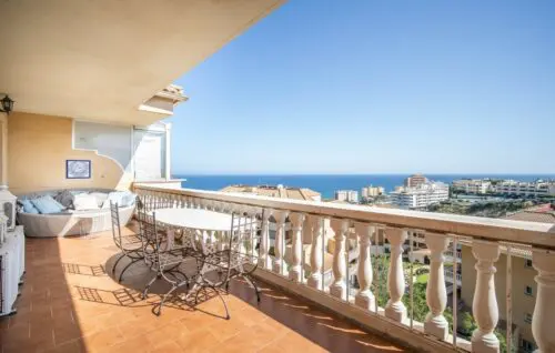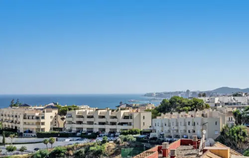 Skøn penthouse til salg i Fuengirola, placeret bare 200 meter fra Middelhavet og byens strandpromenade, hvorfra I kan gå til indkøb, restauranter og stranden på under ti minutter.