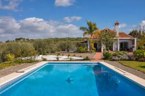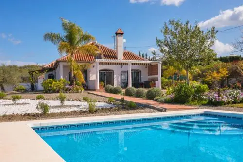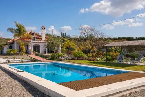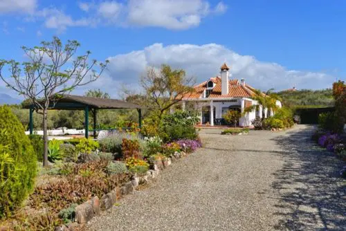 Smukt landhus med egen pool, beliggende på typisk Andalusisk finca-grund med frugttræer, solkroge og masser af åbne udearealer til salg. Kun 30 minutters kørsel fra lufthavnen.