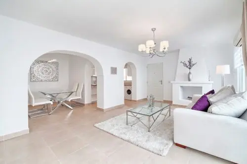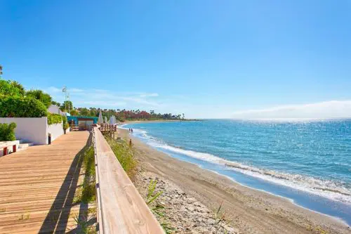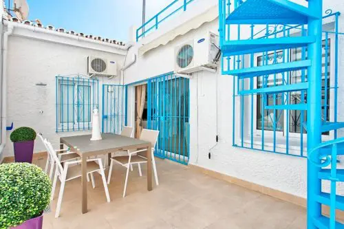En vaskeægte spansk perle ved Middelhavet! Charmerende og romantisk udenpå, men fuldstændig gennemført renoveret indvendigt. Hus på stranden i New Golden Mile til salg.