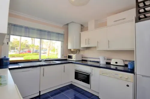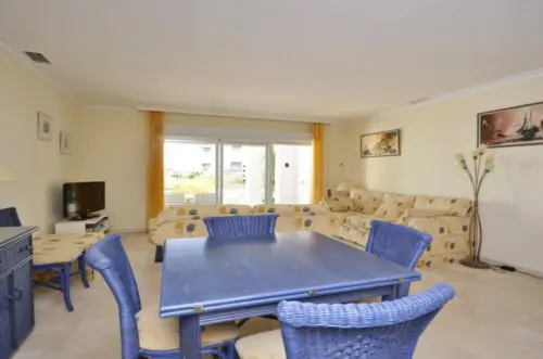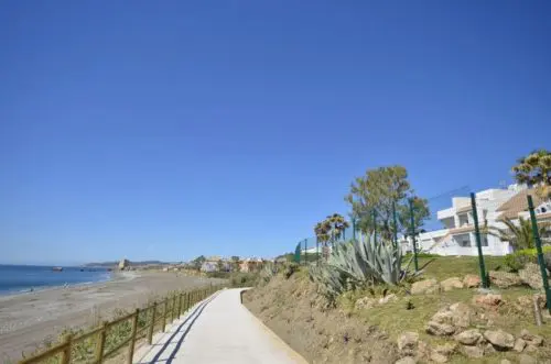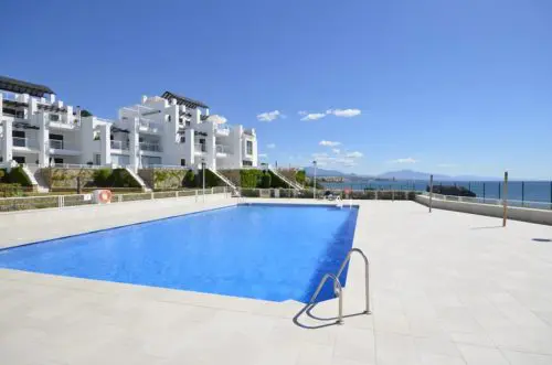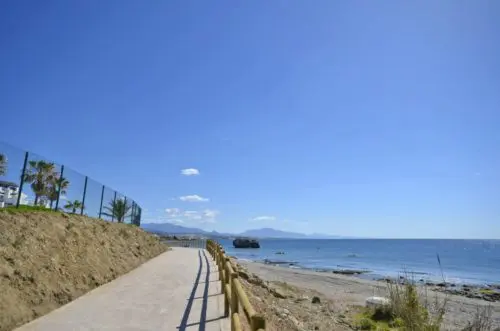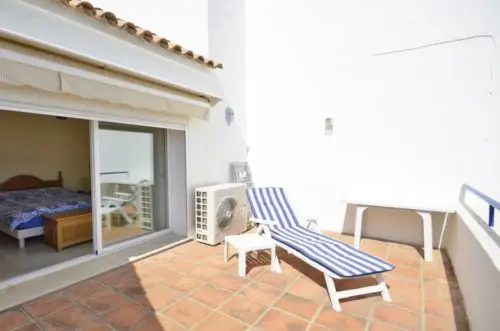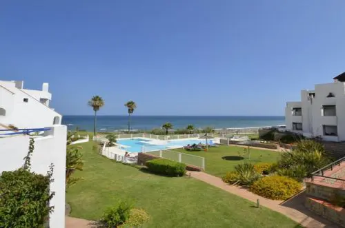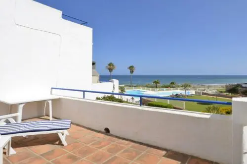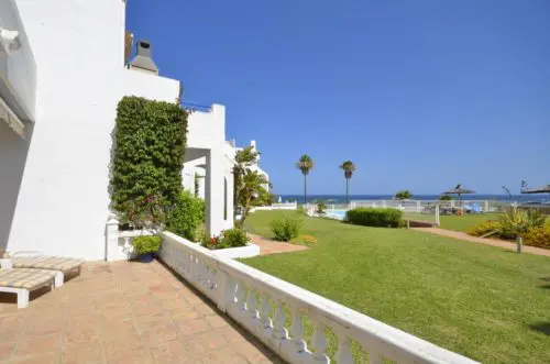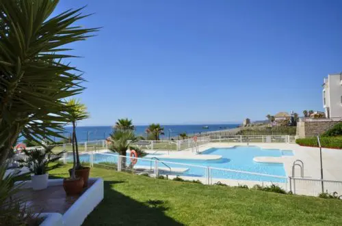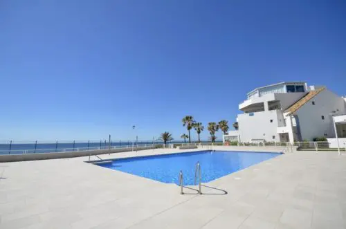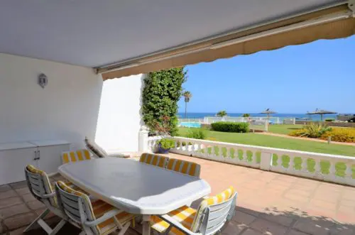 Duplex lejlighed til salg i 1. række til Middelhavet i Casares Playa, med 2 soverum og direkte udgang til badevenlig strand og lille hyggelig promenade.