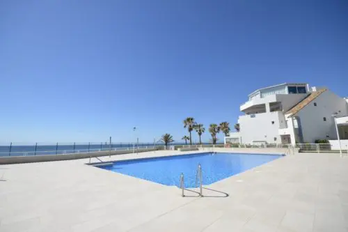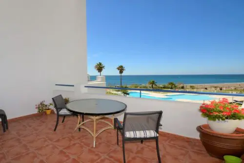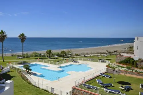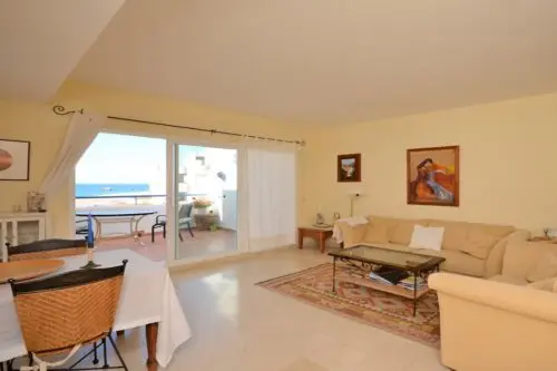 Penthouse-lejlighed på stranden til salg, beliggende i absolut 1. række til Middelhavet i rolige Casares Playa. Attraktiv udbudspris og beliggenhed nær by, golf og havn.