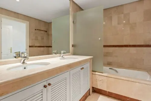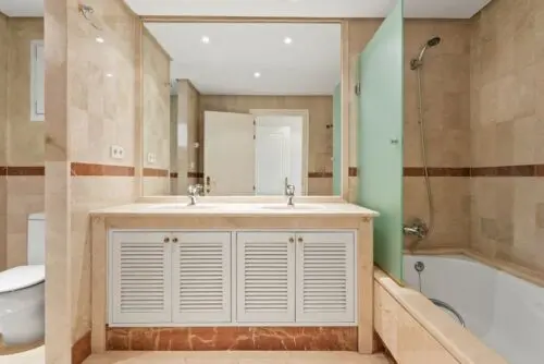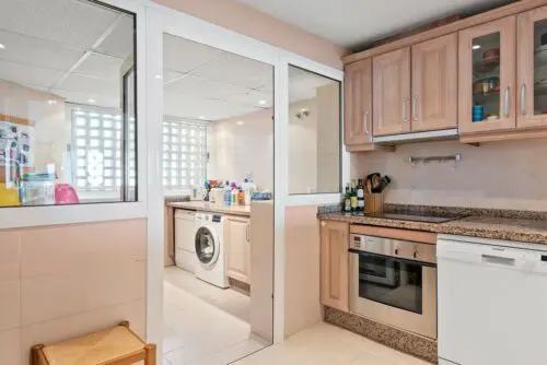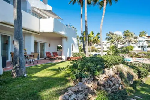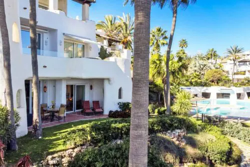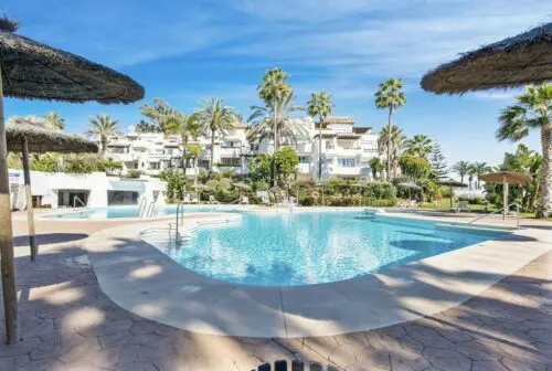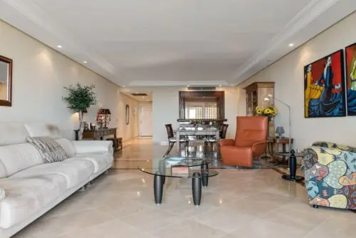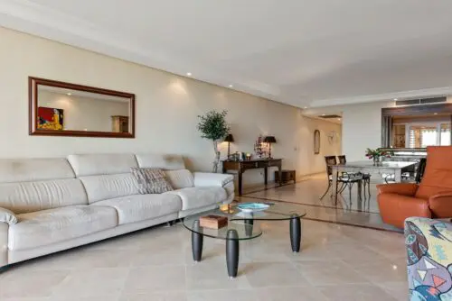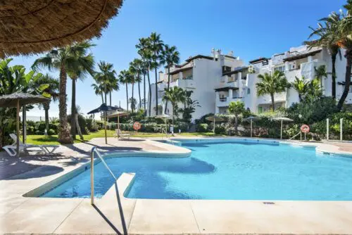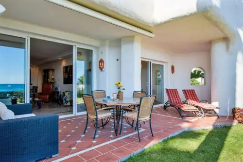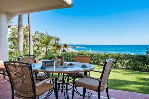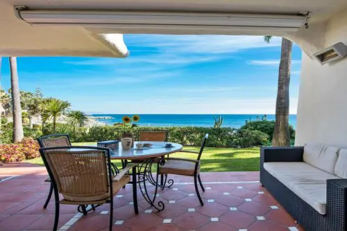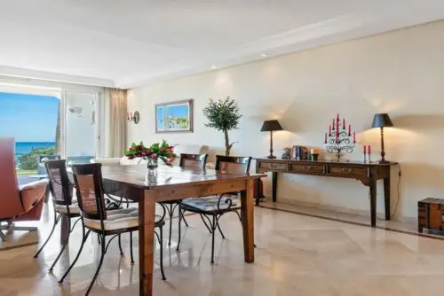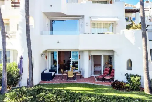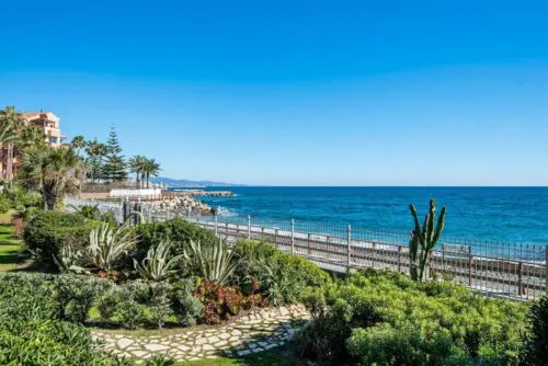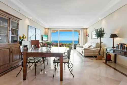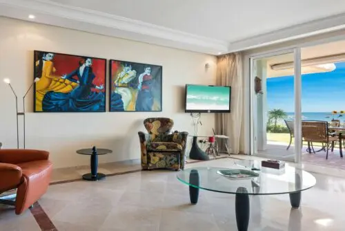 Luksuriøs lejlighed til salg på en priviligeret placering i første parket til Middelhavet i Marbella, få skridt fra eksklusive Puerto Banus og nogle af kystens allerbedste strande.