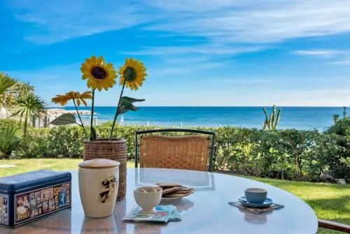 Boligen er helt unikt beliggende på en fantastisk priviligeret grund i absolut 1. linje til Middelhavet.