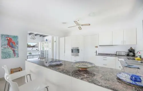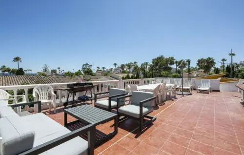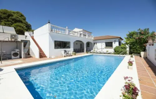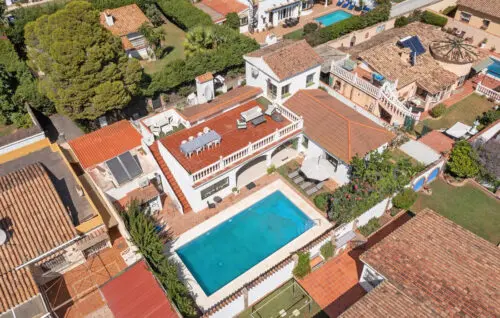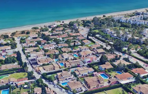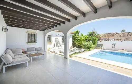 Særdeles udlejningsvenlig strandsidevilla med middelhavskig, fem værelser, pool og en super attraktiv beliggenhed bare 200 meter fra vandkanten i New Golden Mile.
