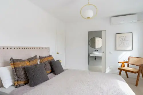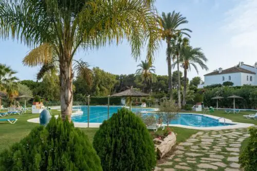 Strandsidehus i nordisk stil til salg nær Puerto Banus, med hele fire soveværelser, egen hyggelig have og privat pool, få minutter til fods fra områdets mest populære badestrand.