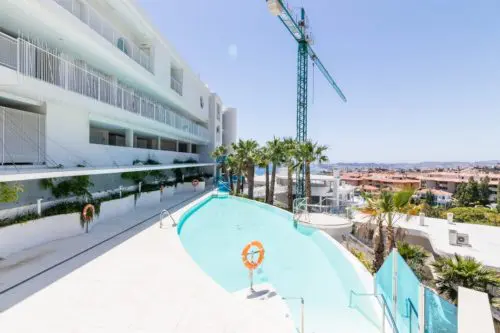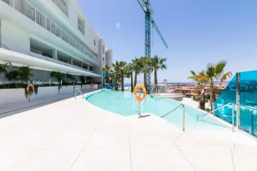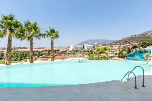 Topmoderne lejlighed fra 2017 med to soveværelser til salg i Benalmadena, ideelt placeret i hjertet af Costa del Sol, kun få minutter fra strand, by, tog og dagstilbud.