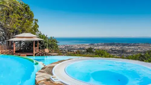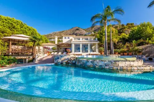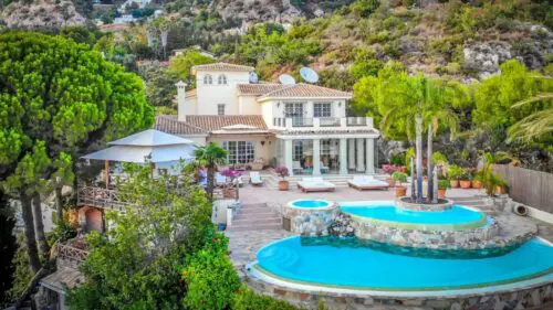 Unik herskabsvilla på hele 985 m² til salg, med egen pool og en af kystens mest spektakulære panoramaudsigter, placeret attraktivt få minutters gang fra charerende Mijas Pueblo.