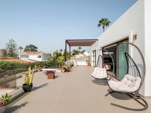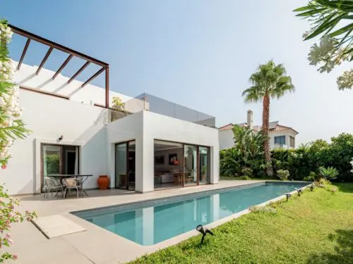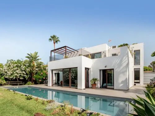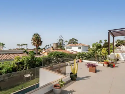 Skøn totalrenoveret villa beliggende i 3. parket til vandet nær Puerto Banus, med skærmet sydvendt have, egen pool, store terrasser og havkig, sælges nu til en attraktiv pris.